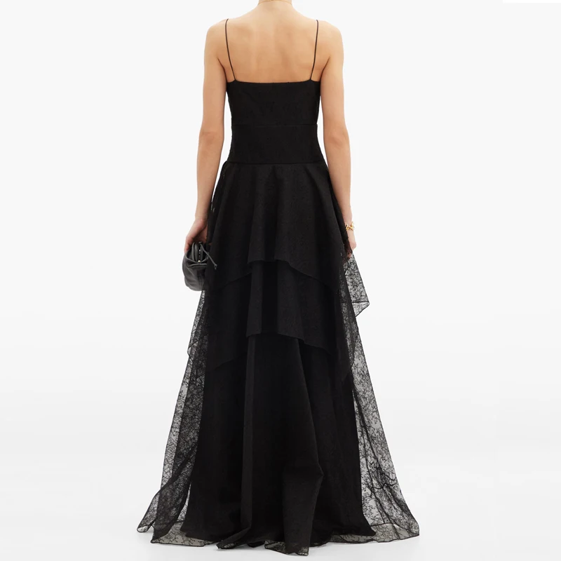Hollow Out Lace Embroidery Fine Sling Plus-size Spring and Summer Evening Dress Woman